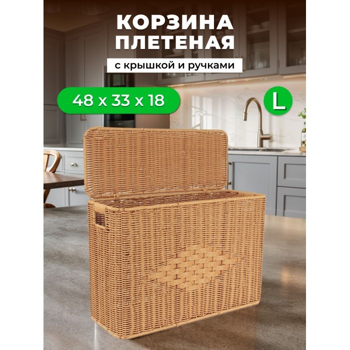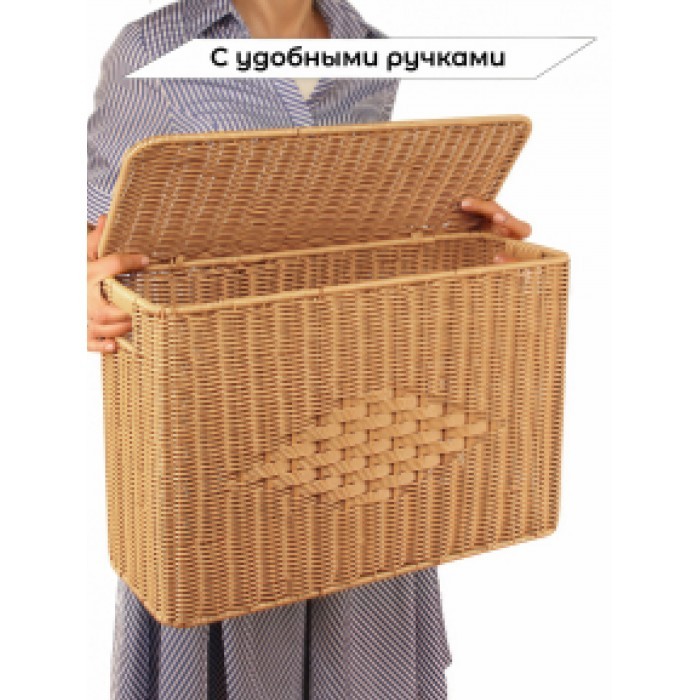 Корзина плетеная с/крыш Узкая L 480*330*180-mpl-fbo иск/ротанг, песочный 265673