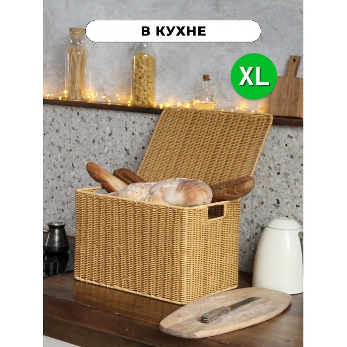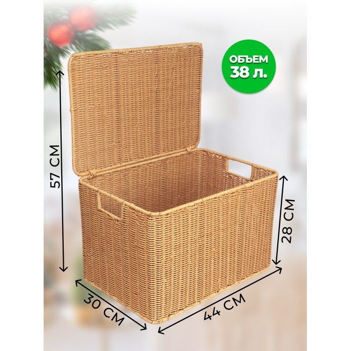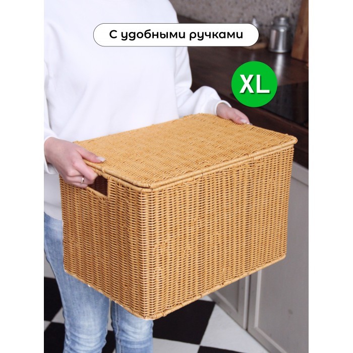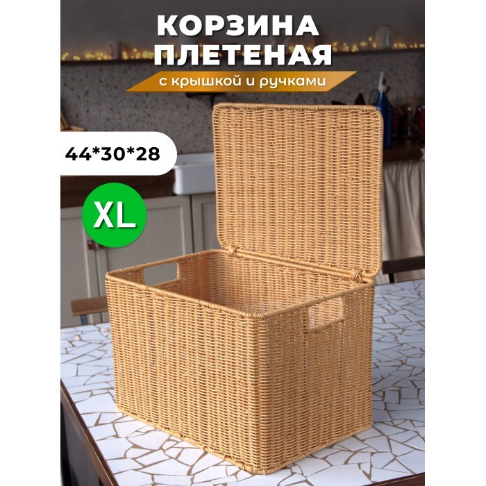 Корзина плетеная с/крыш XL 440*300*280-mpl-fbo иск/ротанг, песочный 263006