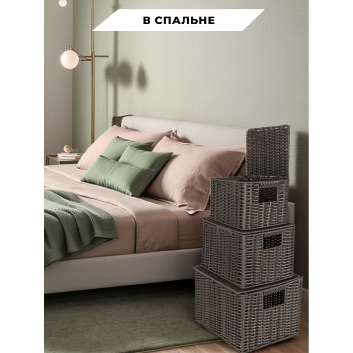 Корзина плетеная с/крыш КОМПЛЕКТ 3шт (S, M, L) + иск/ротанг, серый 265224