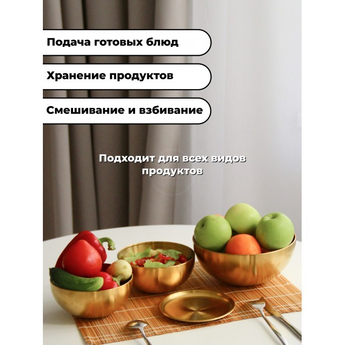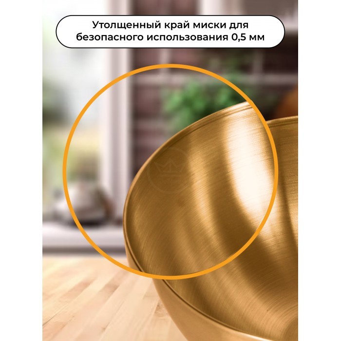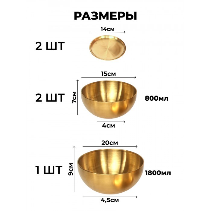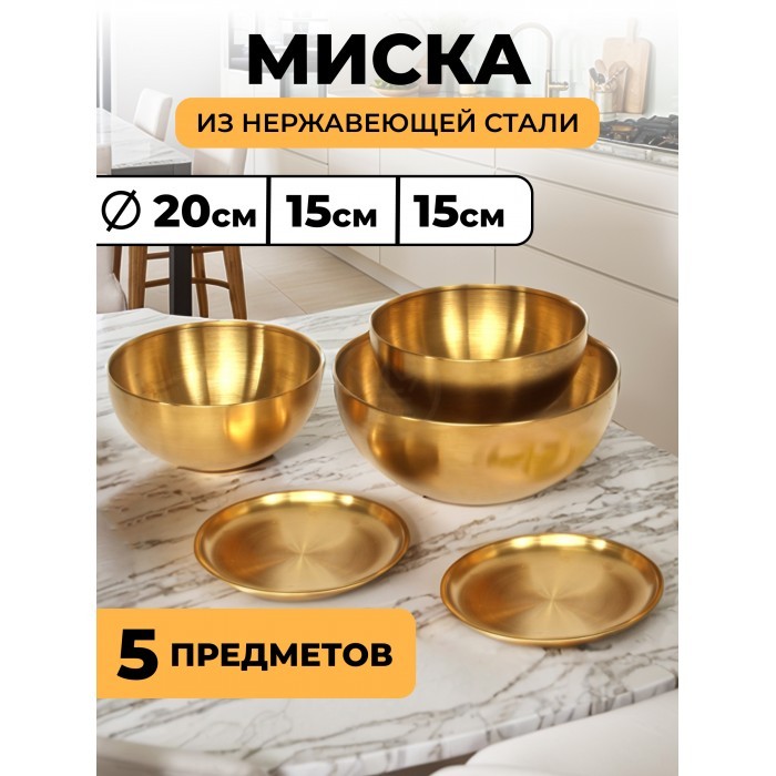 Набор Мисок из нержавеющей стали 5пред (15см- 2шт+20см-1шт+блюдце 14см-2шт) золото 262428