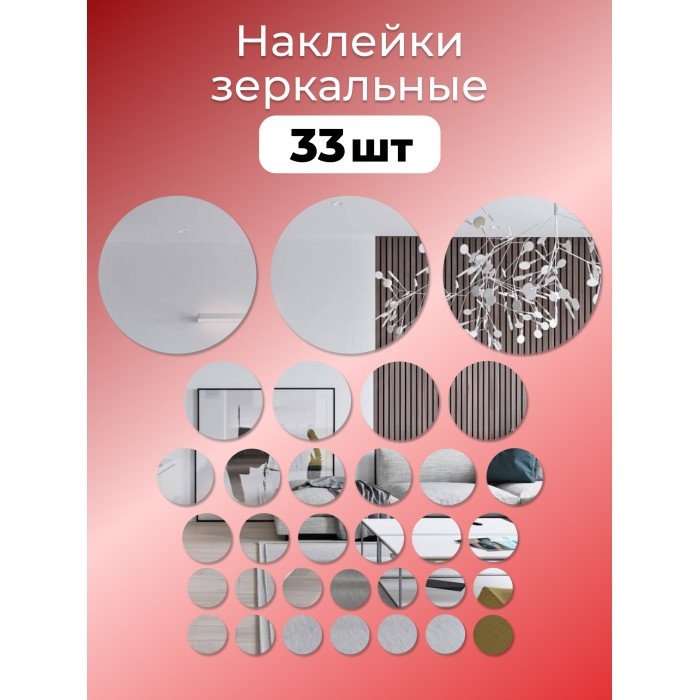 Интерьерные зеркальные наклейки Круги-1 набор ( 32/33 штук ) серебро 257478
