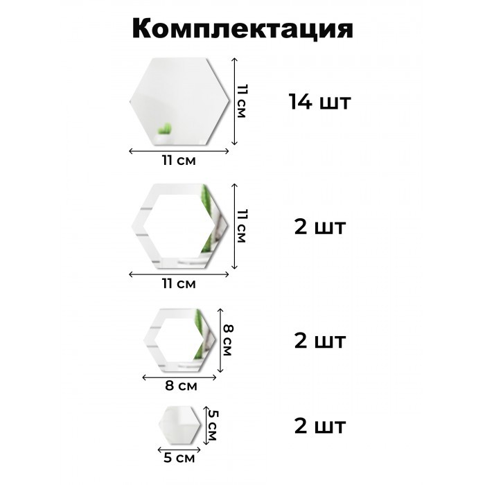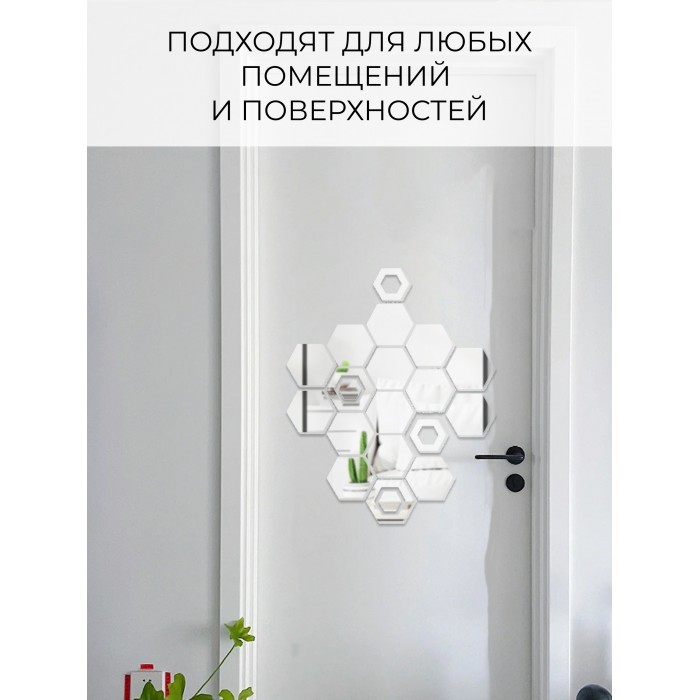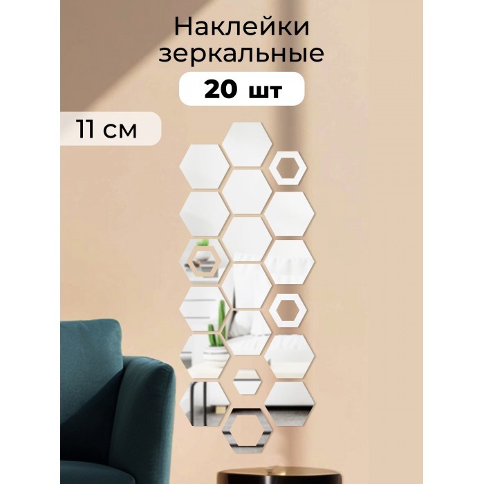 Интерьерные зеркальные наклейки Соты-1шт, 20шт серебро 265538
