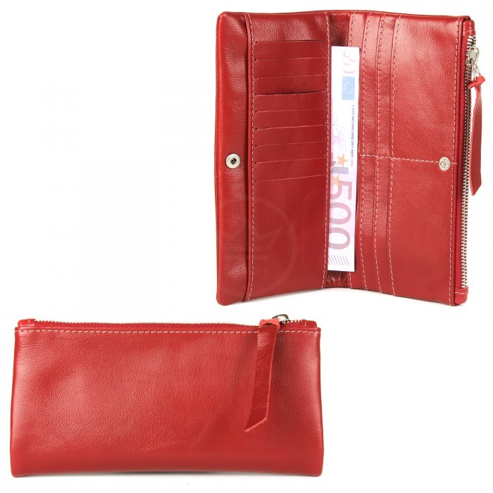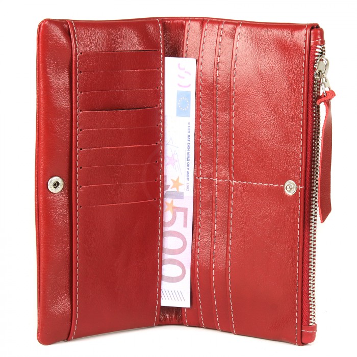 Портмоне женское Croco-ПР-800 натуральная кожа 3 отд, 14 карм, красная фантазия (223) 215555