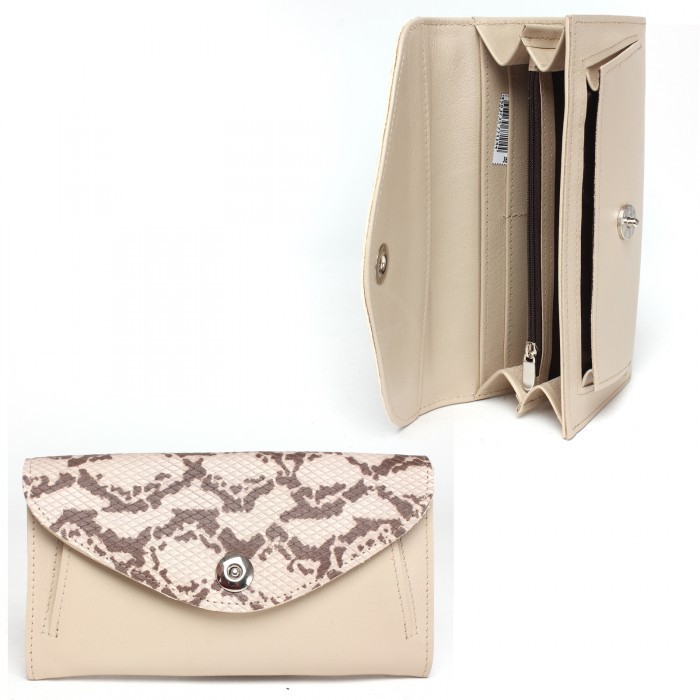 Портмоне женское Croco-ПР-958 натуральная кожа 2 отд, 8 карм, бежевый питон/беж матовый (501/242) 236252