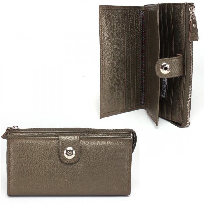 Портмоне женское Croco-ПР-970 на молнии натуральная кожа 3 отд, 20 карм, олива металлик (233) 236253