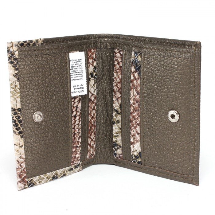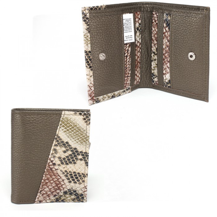 Портмоне женское Croco-ПР-915 натуральная кожа 1 отд, 9 карм, коричневый питон/олива металлик (11/029/233) 236426