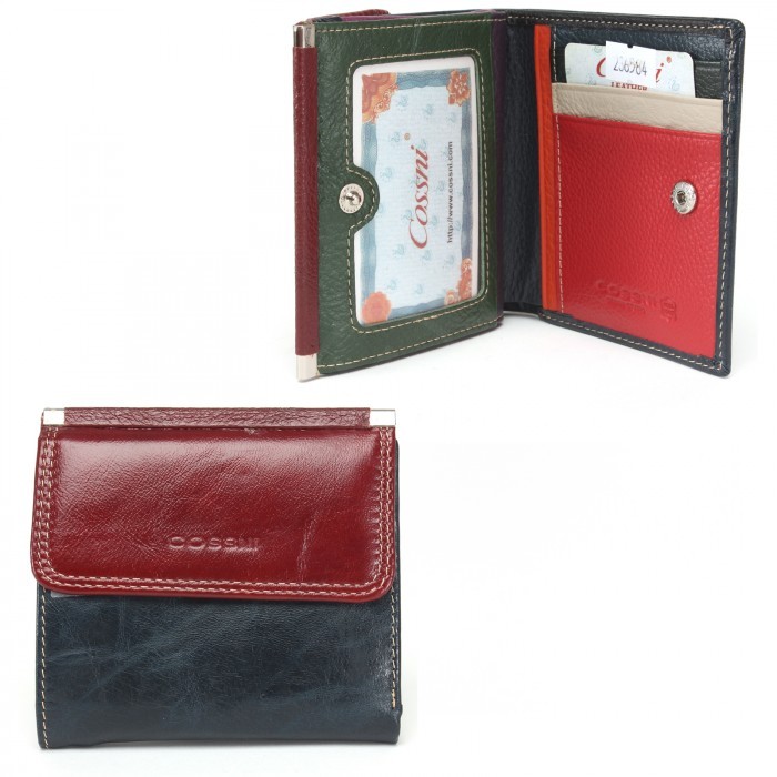 Кошелек женский натуральная кожа Cossni-T 904, защелка внутри, 3отд, 7карм, бордо/синий 236584
