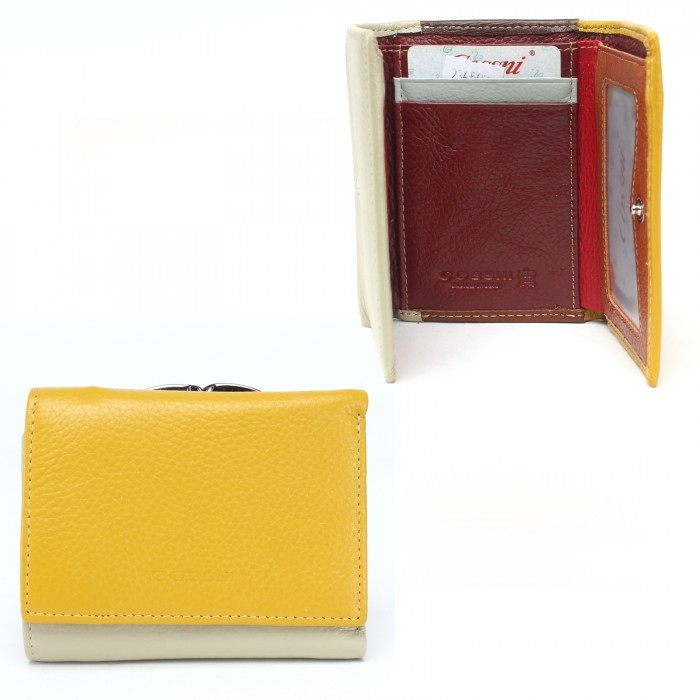 Кошелек женский натуральная кожа Cossni-3707, защелка снаружи, 4отд, 6карм, желтый/оливка 236592