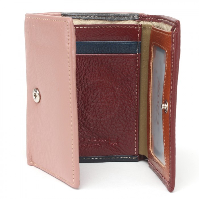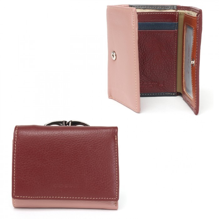 Кошелек женский натуральная кожа Cossni-3707, защелка снаружи, 4отд, 6карм, пудра/бордо 236595