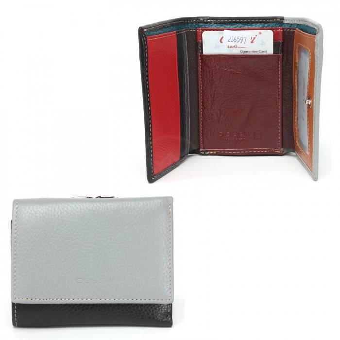Кошелек женский натуральная кожа Cossni-3707, защелка снаружи, 4отд, 6карм, серый/черный 236597
