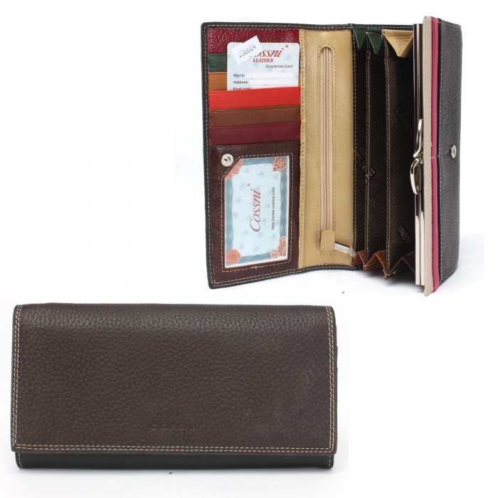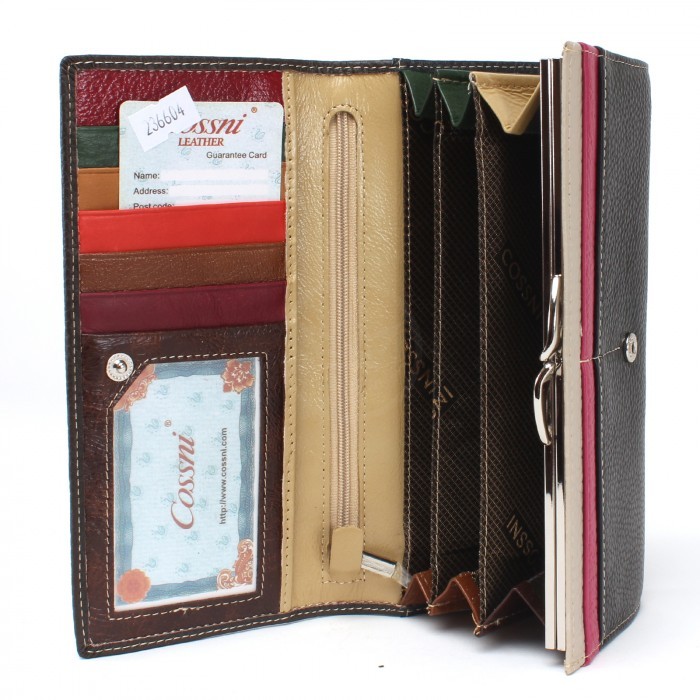 Кошелек женский натуральная кожа Cossni-T 901, защелка внутри, 7отд, 14карм, корич+черный 236604