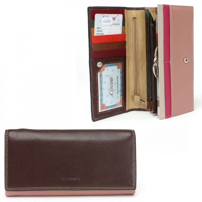 Кошелек женский натуральная кожа Cossni-T 901, защелка внутри, 7отд, 14карм, корич+пудра 236606