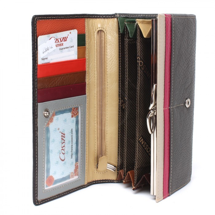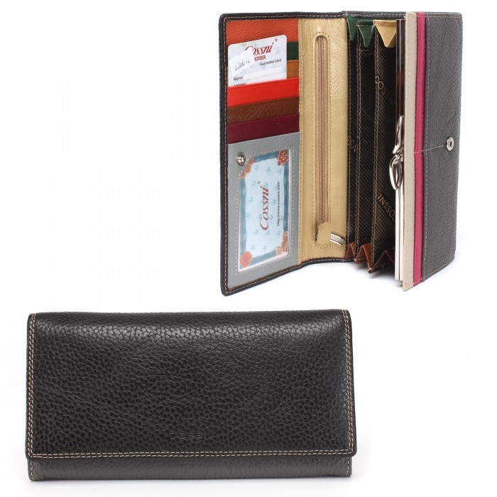 Кошелек женский натуральная кожа Cossni-T 901, защелка внутри, 7отд, 14карм, черный+серый 236612