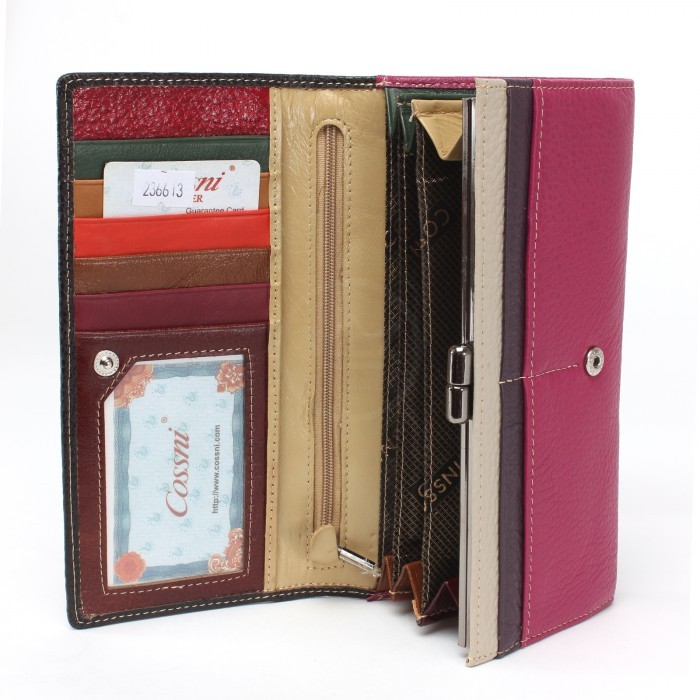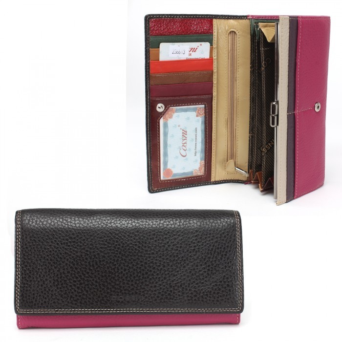Кошелек женский натуральная кожа Cossni-T 901, защелка внутри, 7отд, 14карм, черный+фуксия 236613