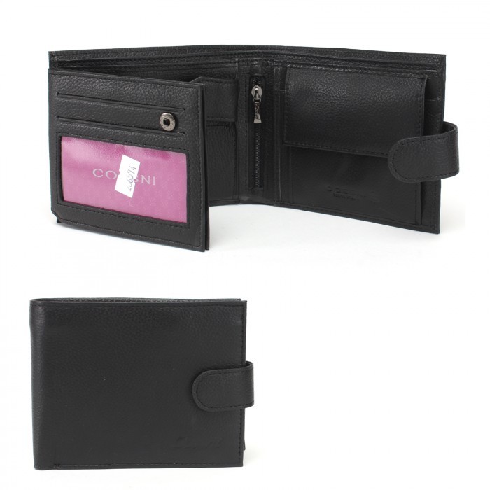 Кошелек мужской натуральная кожа Cossni-12437, 3отд, 12карм, черный 236574