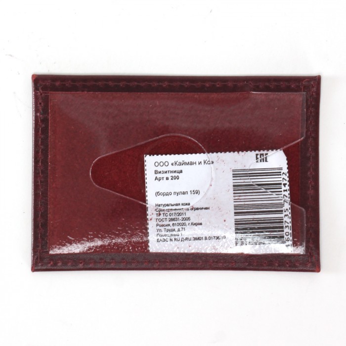 Обложка пропуск/карточка/проездной Croco-В-200 натуральная кожа бордо пулл-ап (159) 236516
