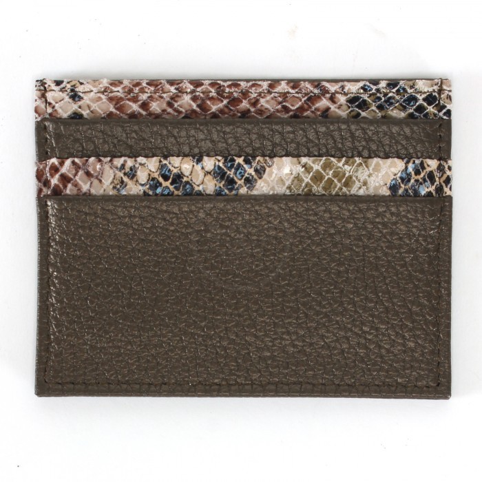 Визитница-кардхолдер Croco-ВК-214 н/к, 1отд, 3карм, коричневый питон/олива металлик (11029/233) 236520