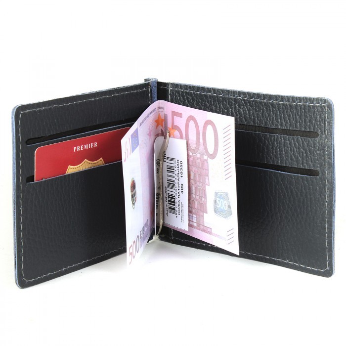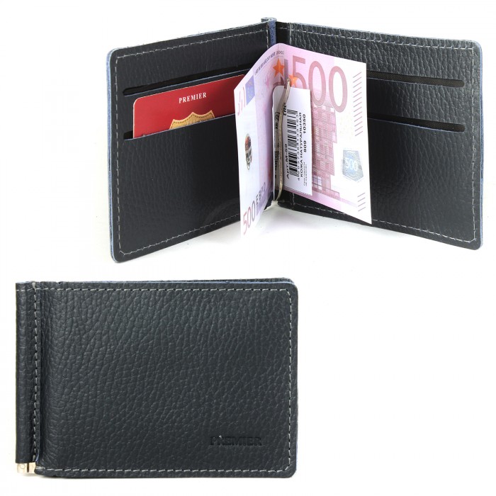 Зажим для купюр Premier-М-59 натуральная кожа (4 карм+карм под мелочь) синий тем флотер (351) 215561