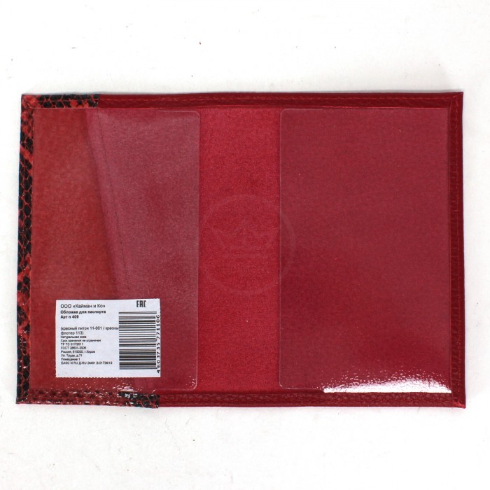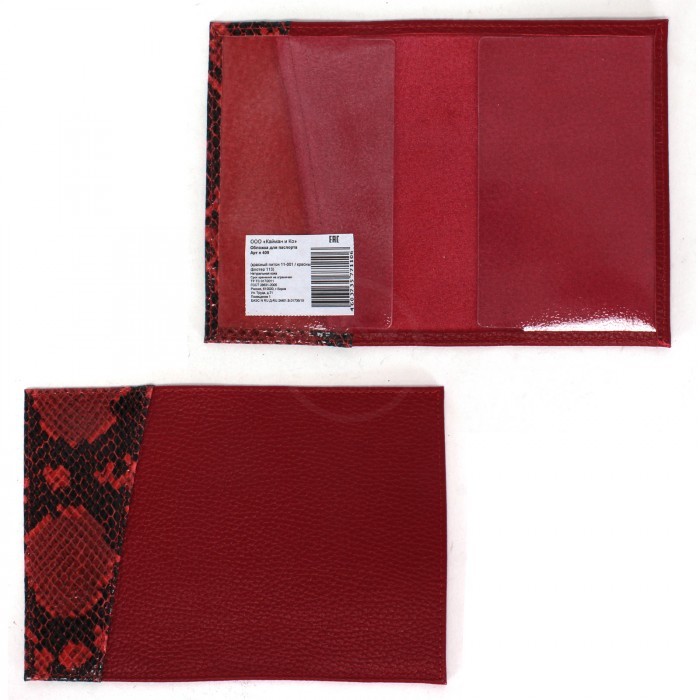 Обложка для паспорта Croco-П-409 натуральная кожа красный питон/красный флотер (11/001/113) 236259