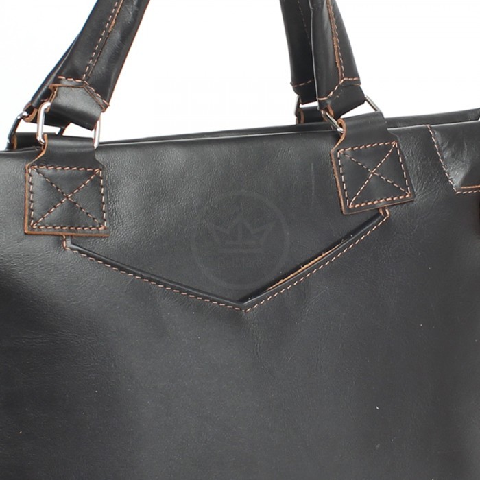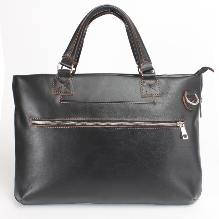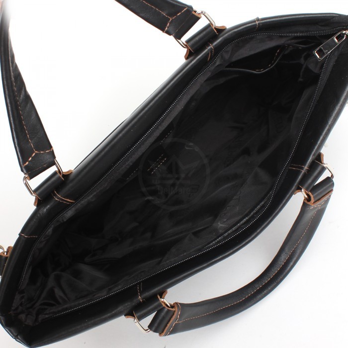 Портфель натуральная кожа MT-01-10, 1 отд+плеч рем, 3внеш карм, 4внут карм, отдел д/ноутбука, черный джез/рыжая строчка (4466) 236446
