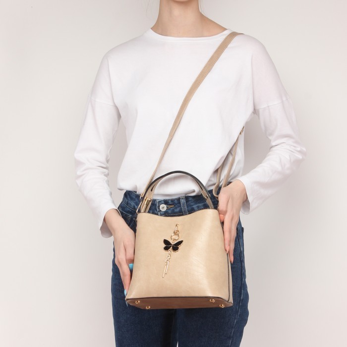 Сумка женская искусственная кожа MIO-12329, 3отд, 2плеч/рем, бежевый SALE 236392
