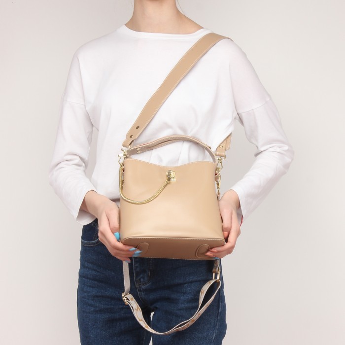 Сумка женская искусственная кожа MIO-12579, 3отд, плечевой ремень, бежевый 236410