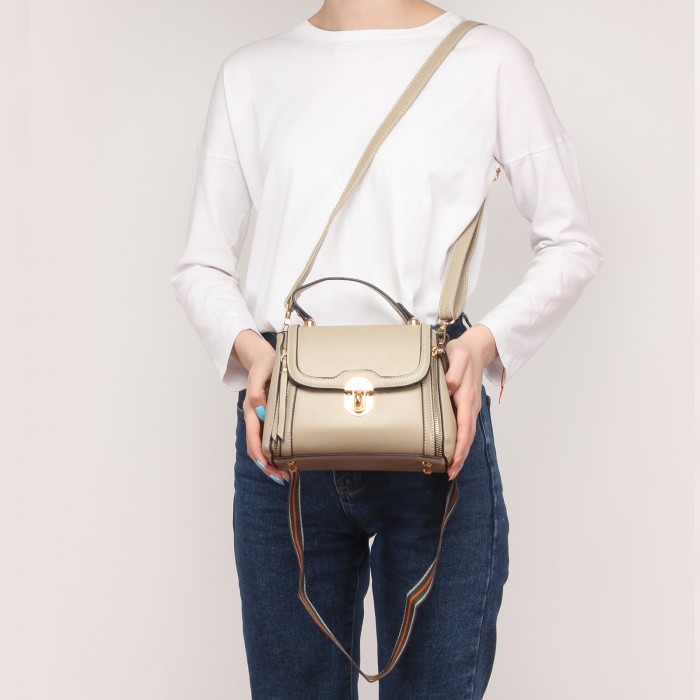 Сумка женская искусственная кожа MIO-12578, 1отд+карм/перег, 2плеч/рем, бежевый SALE 236414