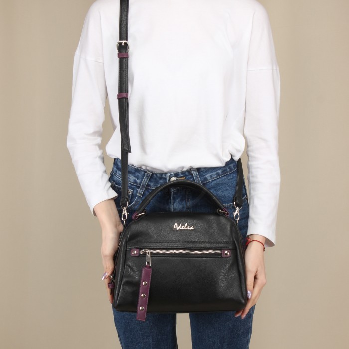 Сумка женская искусственная кожа ADEL-118/MM/1в, 1отд, плечевой ремень, черн/слива 235038