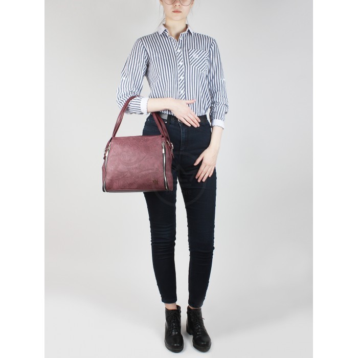 Сумка женская искусственная кожа GR-1522; 1отд+карм/пер, бордо ажур 215926