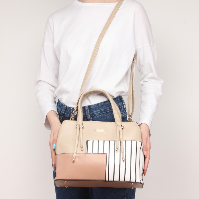 Сумка женская искусственная кожа Tai 09-2836, 1отд+карм/перег, плечевой ремень, бежевый 236286