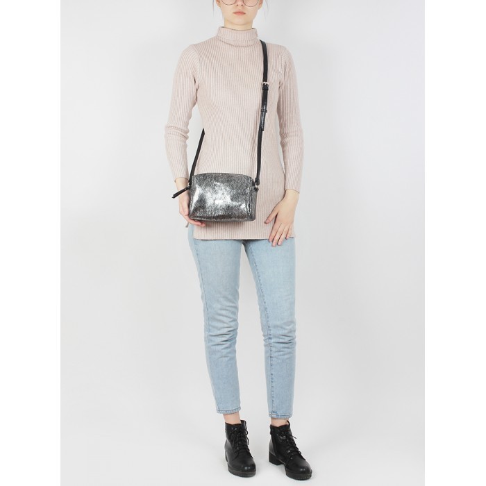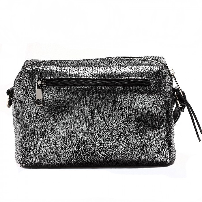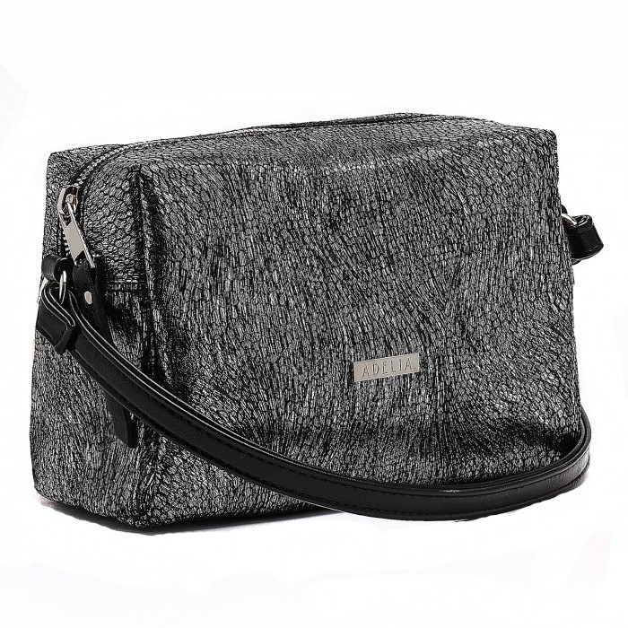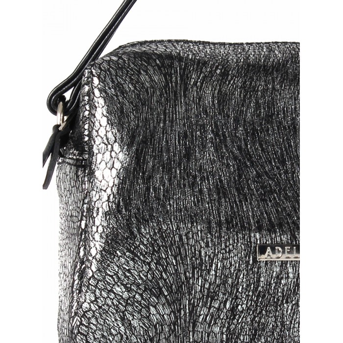 Сумка женская натуральная кожа ADEL-114 (отделка ИСК/КОЖА), 1отд, плечевой ремень, черн/серебро 213996