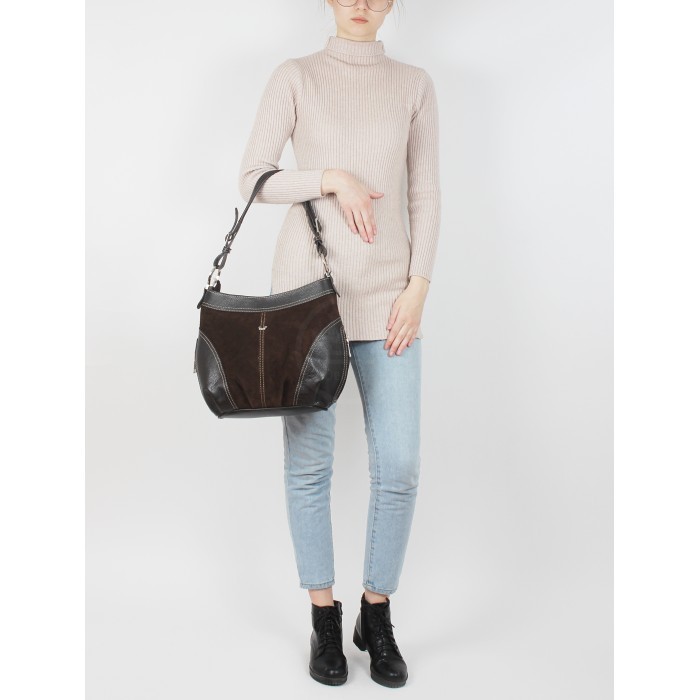 Сумка женская нат/кожа+нат/замша Варвара 254-3, 1отд+карм/пер, коричневый (4427) 215665