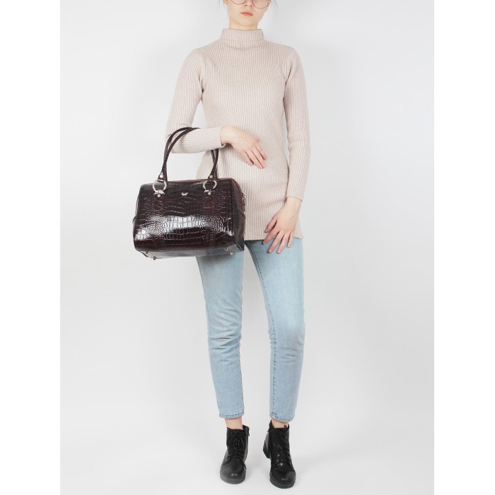 Сумка женская натуральная кожа Варвара 313-3, 1отдел, бордо крокодил (4232) 215990
