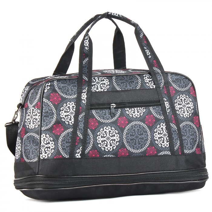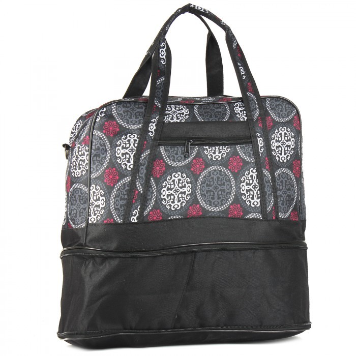 Сумка Дизайн дорожная-Дамская, транс низ, 1отд, плечевой ремень, 1внеш карм, серый/черный (вензеля) 215967